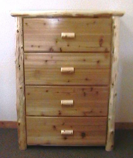 This cedar log four drawer dresser chest is a great storage option!