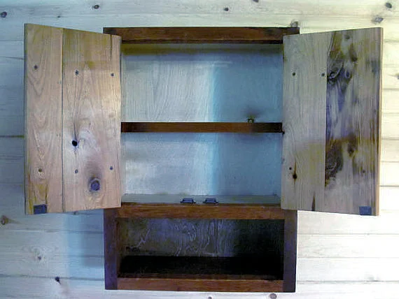 The standard size for our rustic toilet cabinets is 22" x 30" x 8". All of these cabinets as well as all of our products can be custom made to any size and type of wood. The cabinets can also be stained to any stain or paint color.